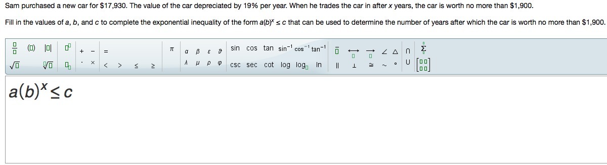Since the car is worth no more than $1,900 when bought, we can rewrite the above equation as: