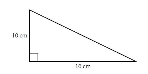 to find the hypotenuse of a triangle, A^2 + B^2 = C^2 if A and B are sides and C is the Hypotenuse. 100 + 256 is 356, so C^2 is 356. to find C, we square root both sides. thus C^2 becomes C, and 356 becomes the square root of 356, which is 18.8679623... and rounded to the nearest 10th of a centimeter that's 18.87