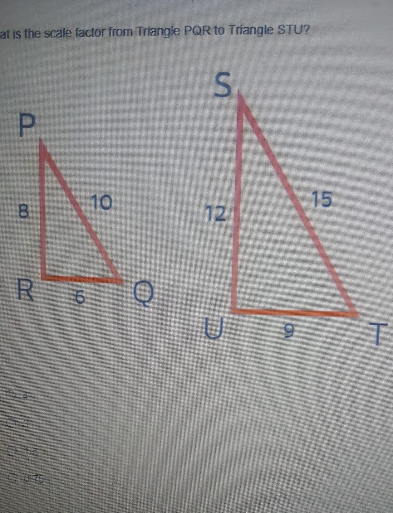 What is the scale factor from triangle PQR to triangle STU