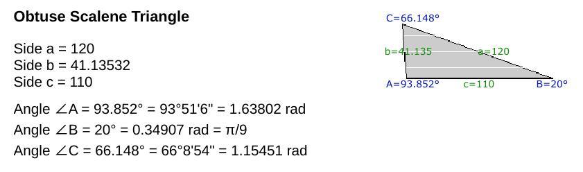 b² = 120² +110² -2(120)(110)·cos(20°) ≈ 1692.1148