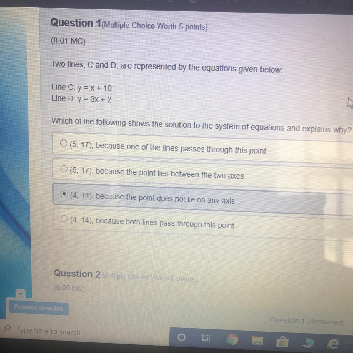 You would set the equations equal to eachother and get x=-5/4 and then plug that in for x, i hope this helps!
