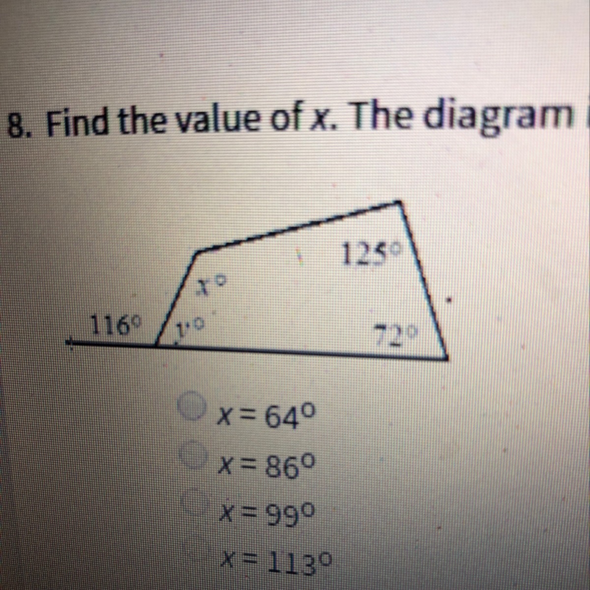 Angles 1, 2, and 3 added together should make 180 degrees.