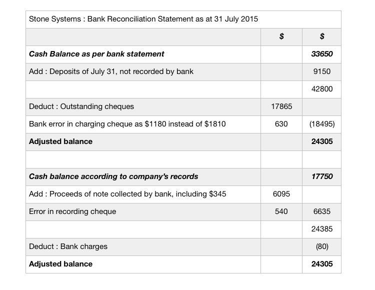 The cash account for Stone Systems at July 31, 20Y5, indicated a balance of $17,750. The bank statement indicated a balance of $