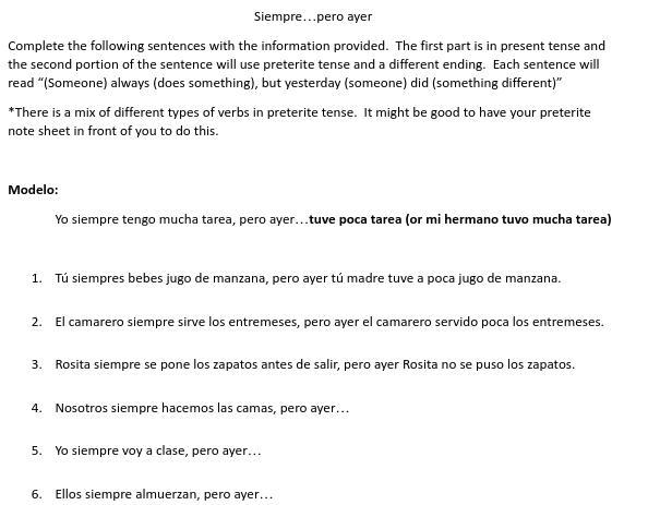 Question 1: Yo conozce a mi profesora de historia ayer.