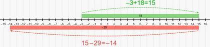The changes may be easier to see on a number line. If you start at -3 °F and increase the temperature by 18 °F, you end up at 15 °F. If the temperature then changes to -14 °F, it has dropped by 29 °F.