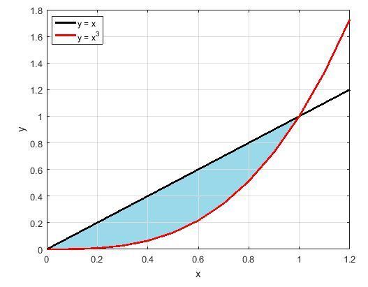 ![\int_{0}^{1} (x^{3}-x^{5}+3x^{2}-3x^{6})dx \\\\ = [ \frac{x^{4}}{4} - \frac{x^{6}}{6} +3 (\frac{x^{3}}{3}) -3( \frac{x^{7}}{7})]_{0}^{1} \\\\ = \frac{55}{84}](https://tex.z-dn.net/?f=%5Cint_%7B0%7D%5E%7B1%7D%20%28x%5E%7B3%7D-x%5E%7B5%7D%2B3x%5E%7B2%7D-3x%5E%7B6%7D%29dx%20%5C%5C%5C%5C%20%3D%20%5B%20%5Cfrac%7Bx%5E%7B4%7D%7D%7B4%7D%20-%20%5Cfrac%7Bx%5E%7B6%7D%7D%7B6%7D%20%2B3%20%28%5Cfrac%7Bx%5E%7B3%7D%7D%7B3%7D%29%20-3%28%20%5Cfrac%7Bx%5E%7B7%7D%7D%7B7%7D%29%5D_%7B0%7D%5E%7B1%7D%20%5C%5C%5C%5C%20%3D%20%20%20%5Cfrac%7B55%7D%7B84%7D%20)