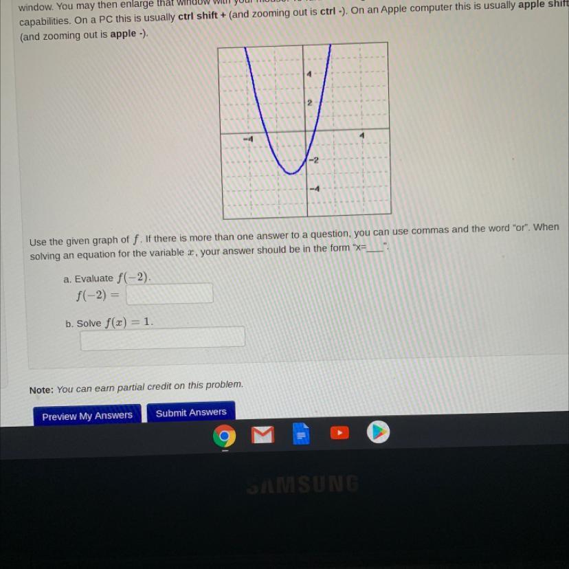 Draw a vertical line through -2 on the x axis. This vertical line will cross the blue parabola at some point P. From point P, draw a horizontal line to the y axis. You should arrive at y = -2. Figure 1, in the attached diagram below, shows this process.