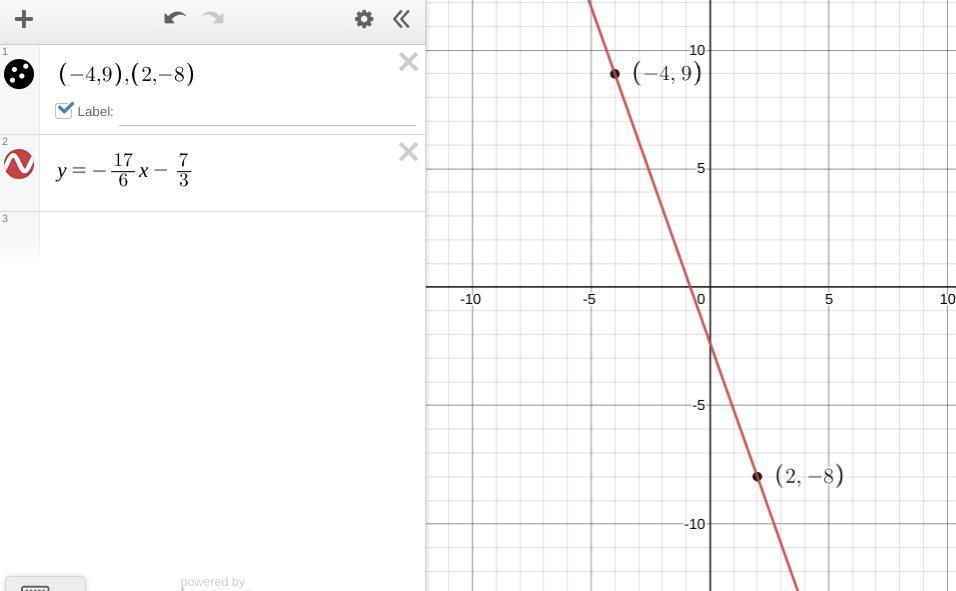 y = (-8 -9)/(2-(-4))(x -(-4)) +9