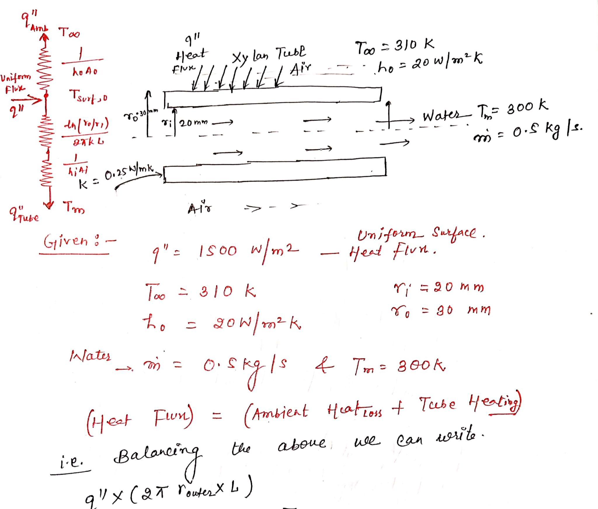 h = the heat transfer coefficient of the pipe = 50 W/m².K
