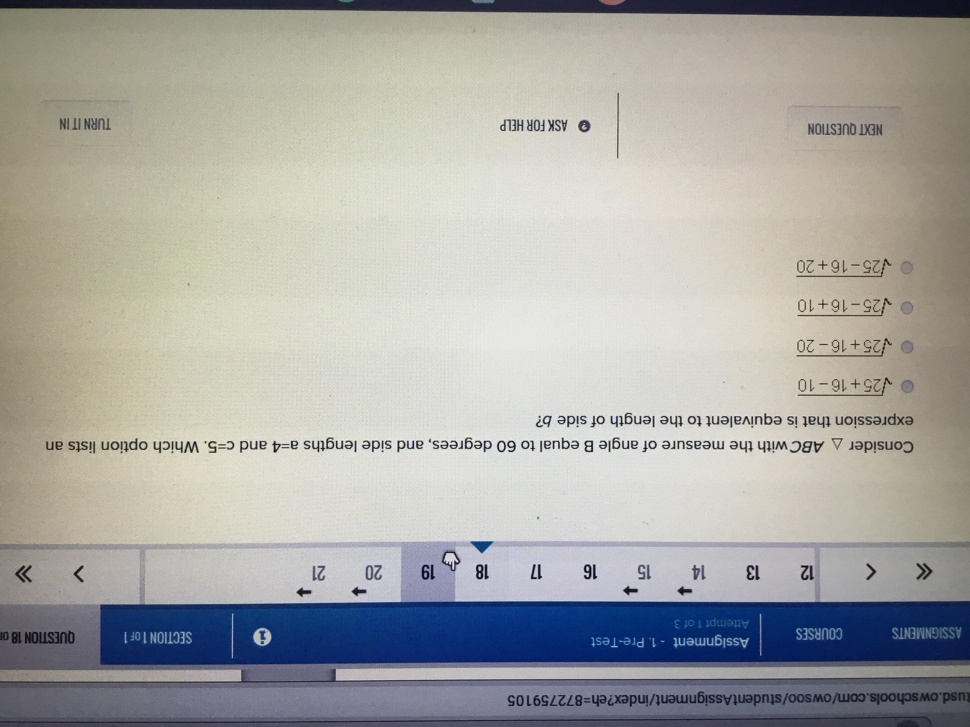 Answer: I think its the third choice. It's asking for the progress of the height.