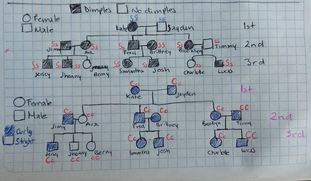 When an allele is dominant it means thet every time this allele be present the trait thet code will show, it doesn't matter if the organism is homozygous (SS for example) or heterozygous (Ss for example) in both cases the person wil have smile dimples, now a recessive trait will only show itself when is in its homozygous form (ss) and in that case and only the person won't show smile dimples.