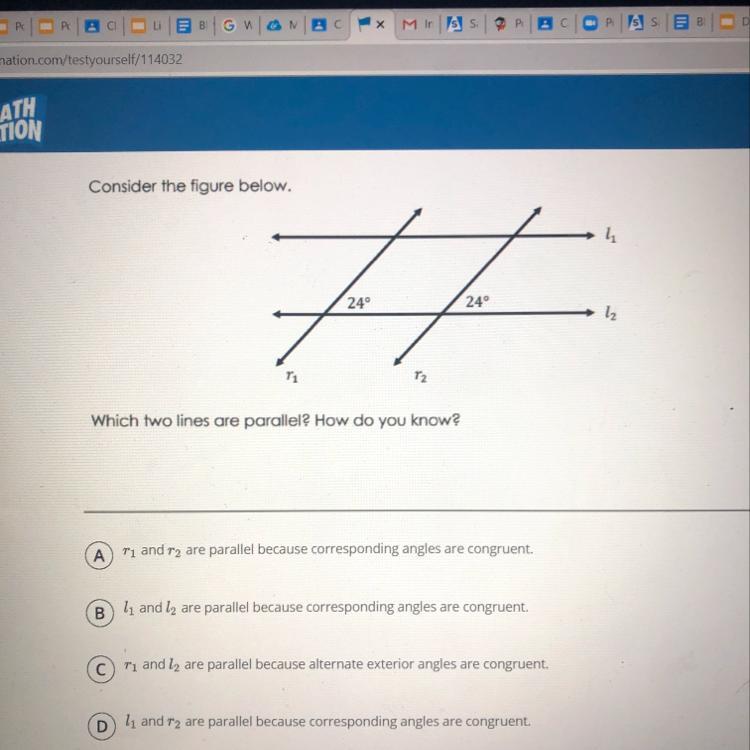 I’m sorry I’m not sure but I believe it would be either A or B because C and D the lines intersect, therefore C and D cannot possibly be perpendicular lines
