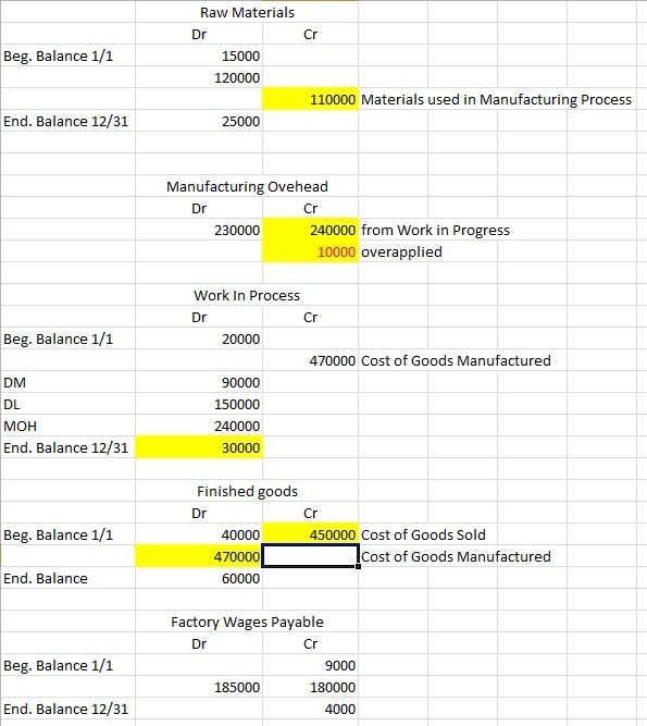 Selected t-accounts of moore company are given below for the just completed year: raw materials bal. 1/1 15,000 credits ? debits