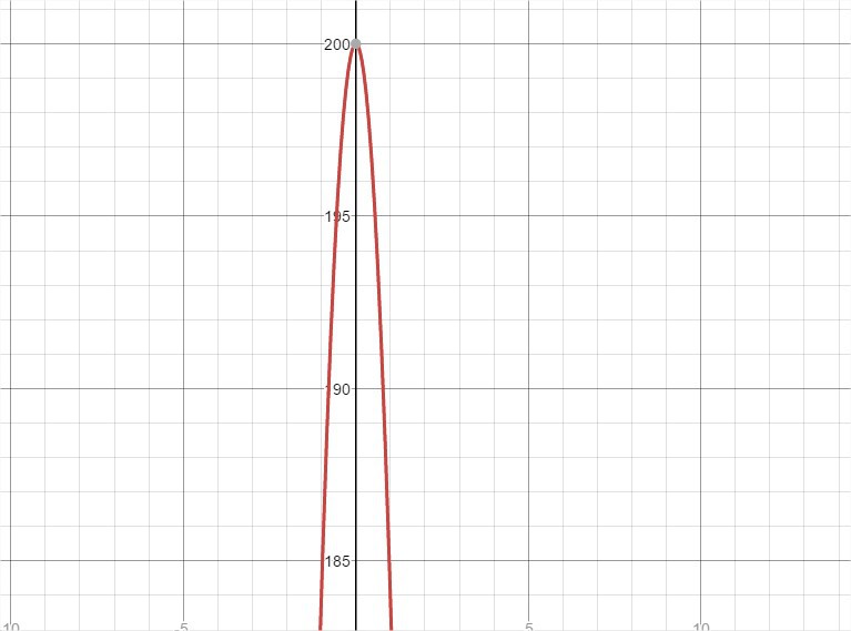 Hence, the resultant equation is : h(t) = -16t² + 200