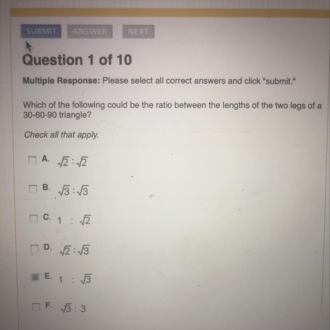 How about F? sqrt(3)/3=0.58 so this is what one of our ratios is equivalent to.