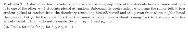Hence, the probability that the rumor is told r times without coming back to a student who has already is: