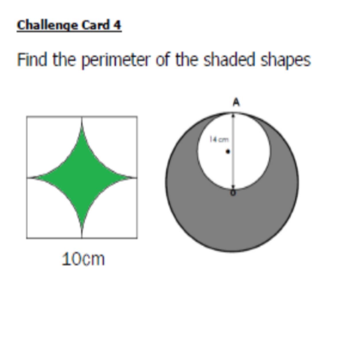 Look at the white area. Where it meets the green border is the region of a quarter circle. So the quarter circle has a circumference of 1/4 * (2pi) r