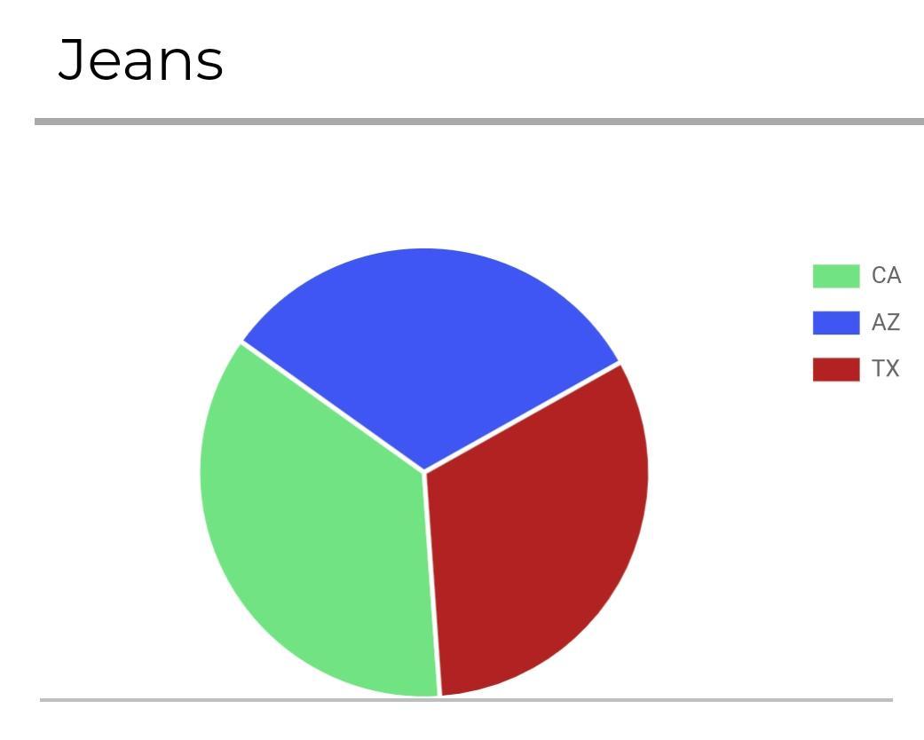 From the data, it is evident that the three states make almost the same number of jeans, but California slightly edges the other two by being the state that produces the most number of jeans. Arizona and Texas produce the similar amounts of Jeans.