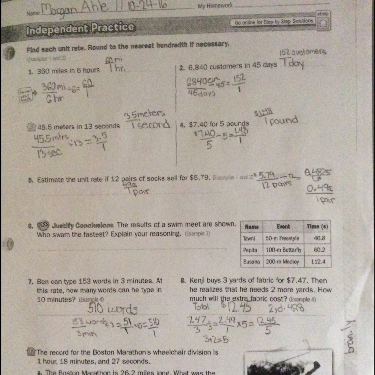#6. The results of a swim meet are shown at the chart on the right. Who swam the fastest?