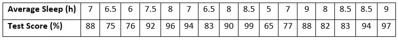 • a3 = the average of the product of sleep hours and test scores (h×%)