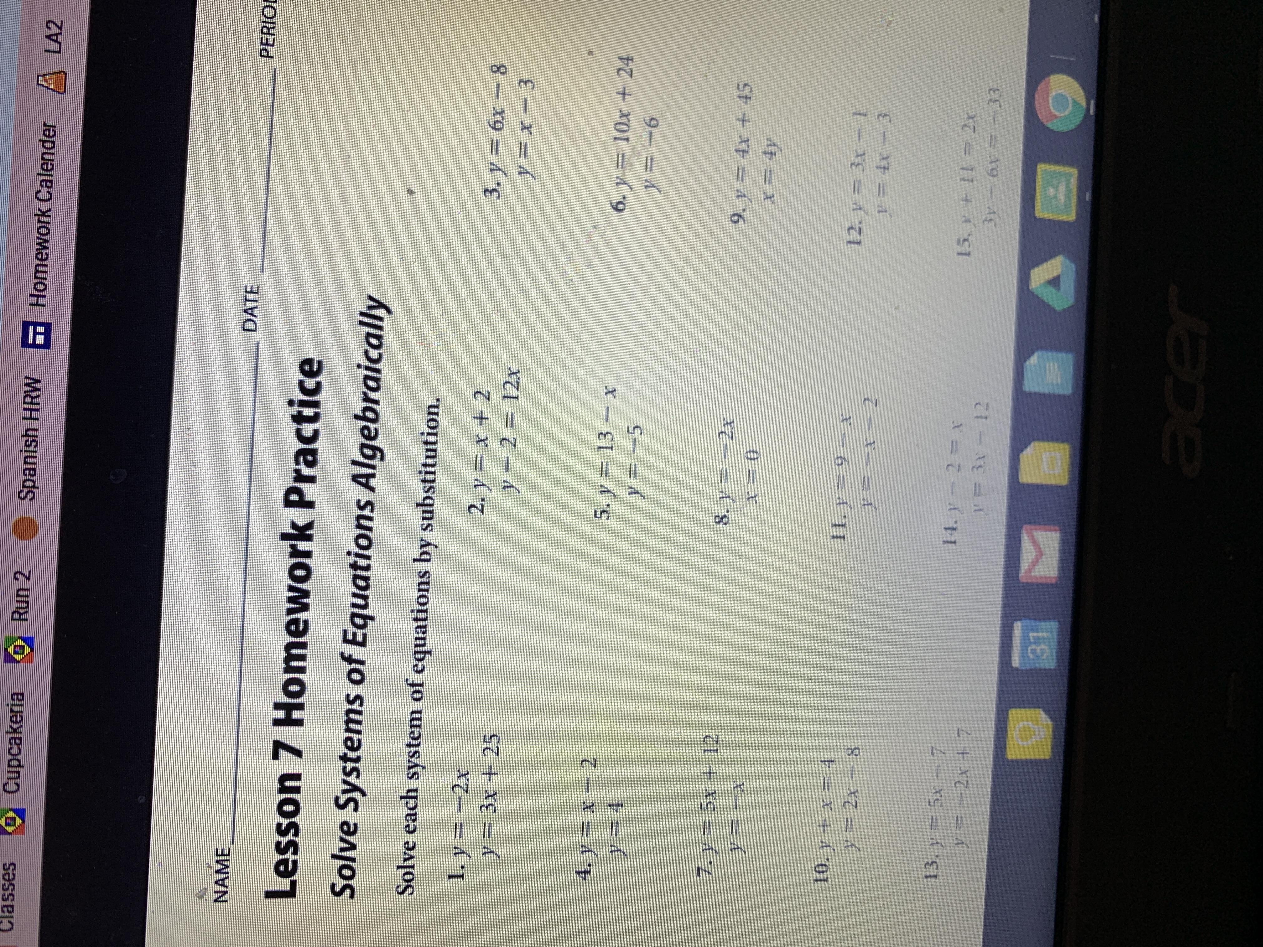 1. sub y=-2x into 2nd equation