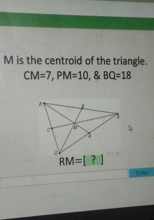 Since CM is 7, RM will be twice as long (ratio 2:1). RM = 14