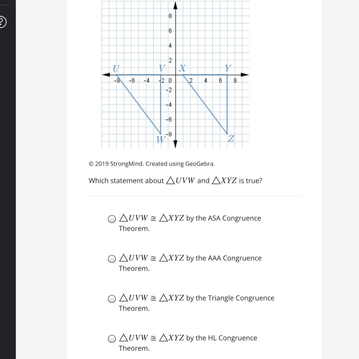 HL congruence means the hypotenuse and one leg of the triangle are congruent. By looking at theses triangles we can count the boxes on the graph and see that both hypotenuses and both of the legs are congruent. So HL congruence can be used to justify this.