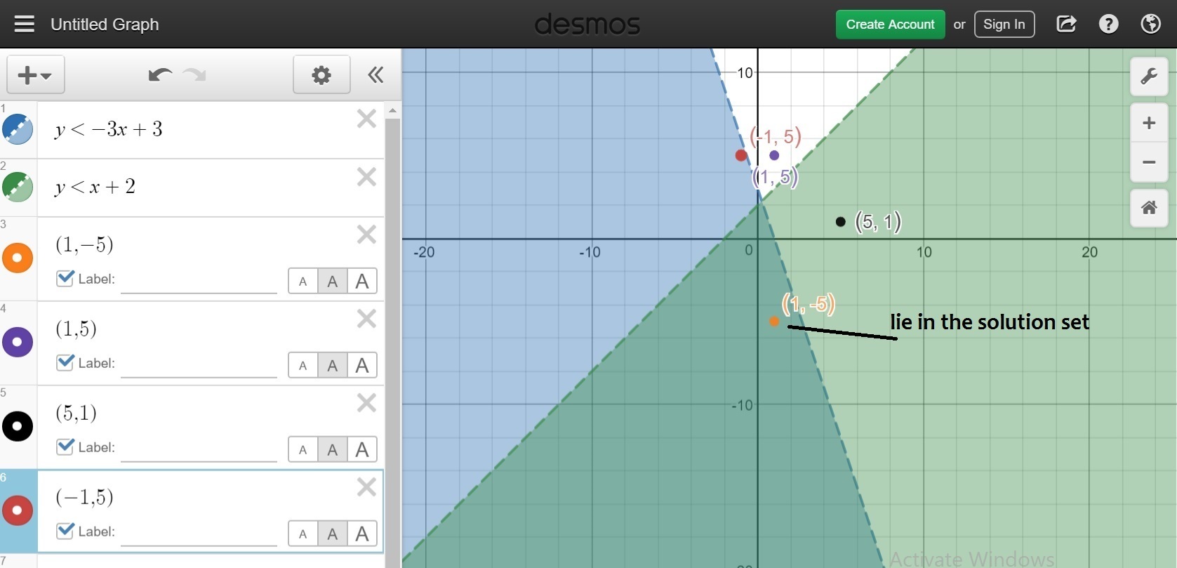 The point (1, −5) lie in the solution set