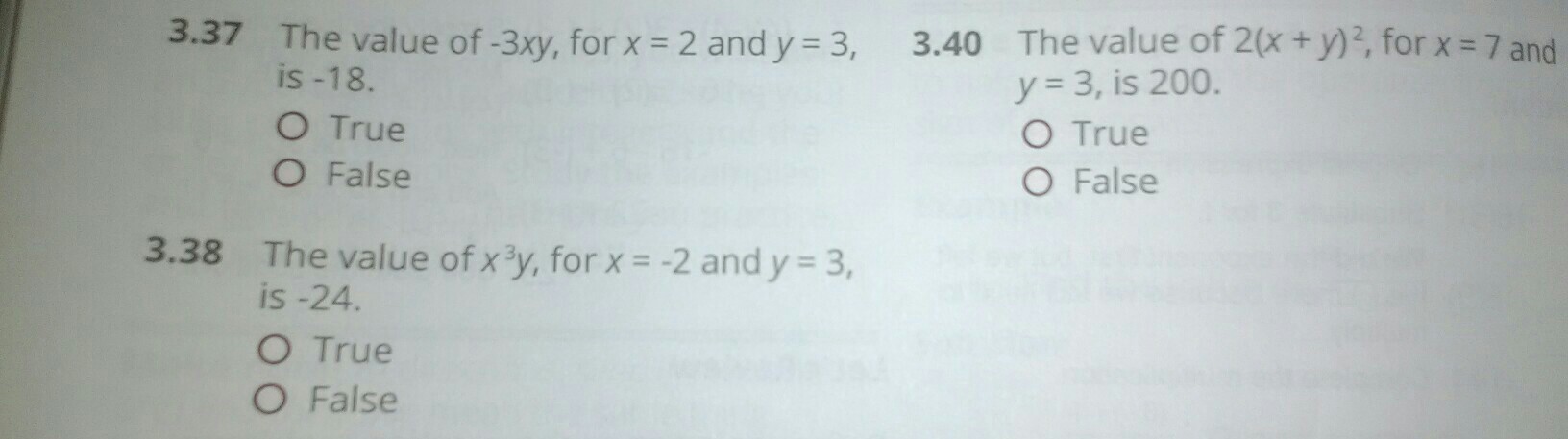 So when you plug in -2 for "x", and 3 for "y", the value of x³y should equal -24