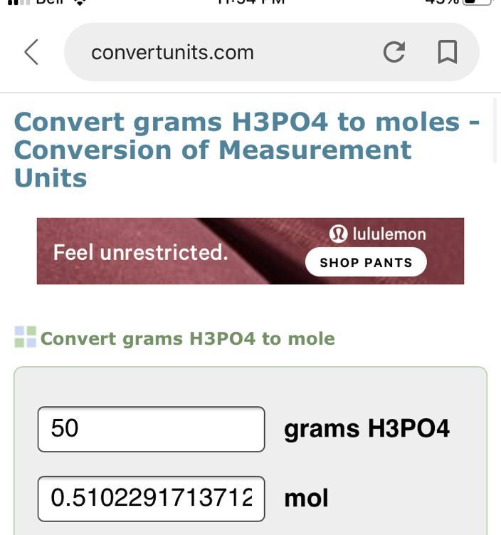 85.2 are in a 2 L solution that has a concentration of 0.6 mol/L
