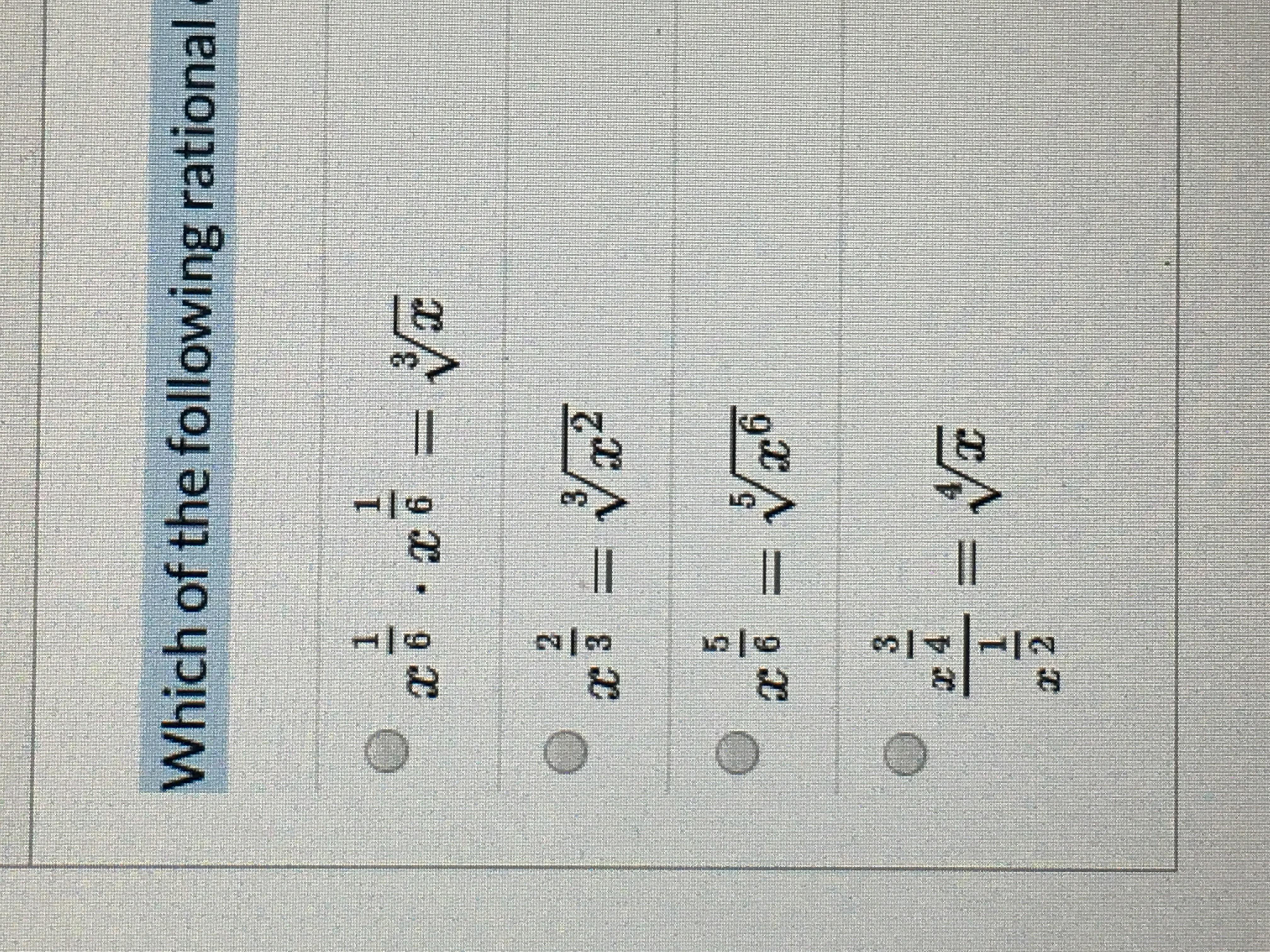 Which of the following rational exponent expressions is NOT simplified correctly as a radical expression?
