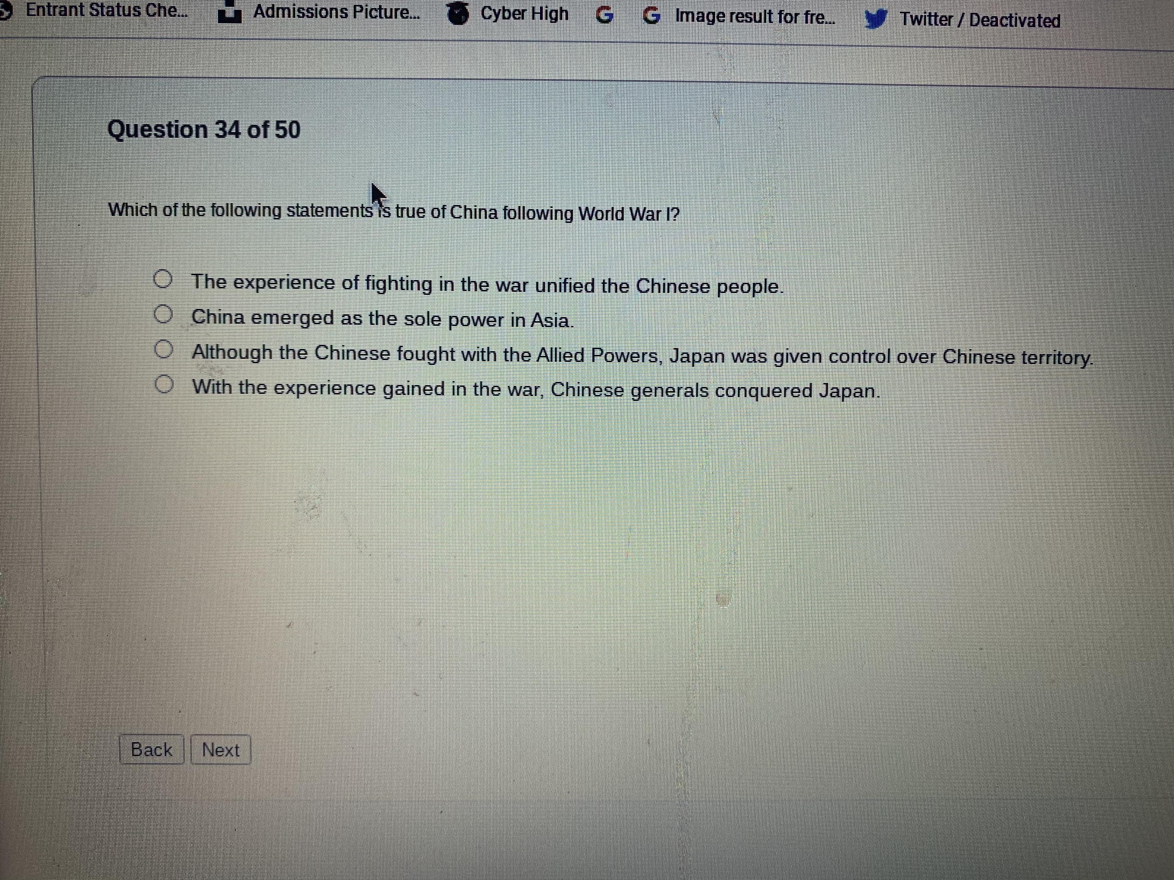 The correct answer is D, as during WWII Chinese generals were able to gain control of Japan