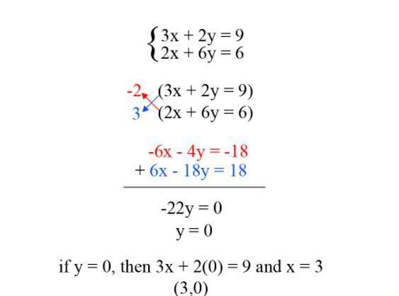 Example of how to apply the elimination method for solving systems of equations is attached.