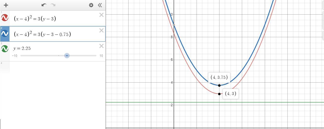 So then the parabola should be on the focus point (4,3.75) and with a directrix y =2.25.