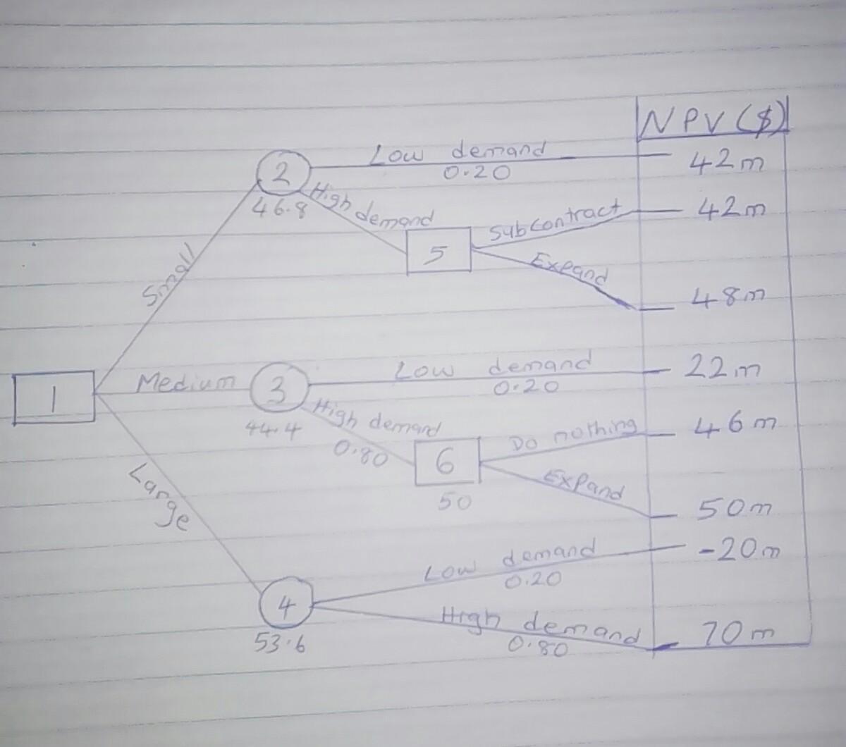 EV(3) =0.20(22) + 0.80(50) = 44.4m