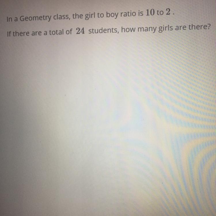 The girl to boy ratio is 10 to 2.