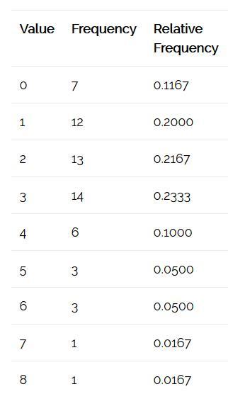 To make a frequency table of the observed values of x, we simply count how many times each value shows up.