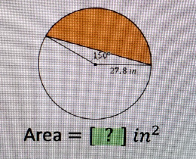 ... A = (1/2)·(27.8 in)²(5π/6 -sin(5π/6)) ≈ 818.4 in²