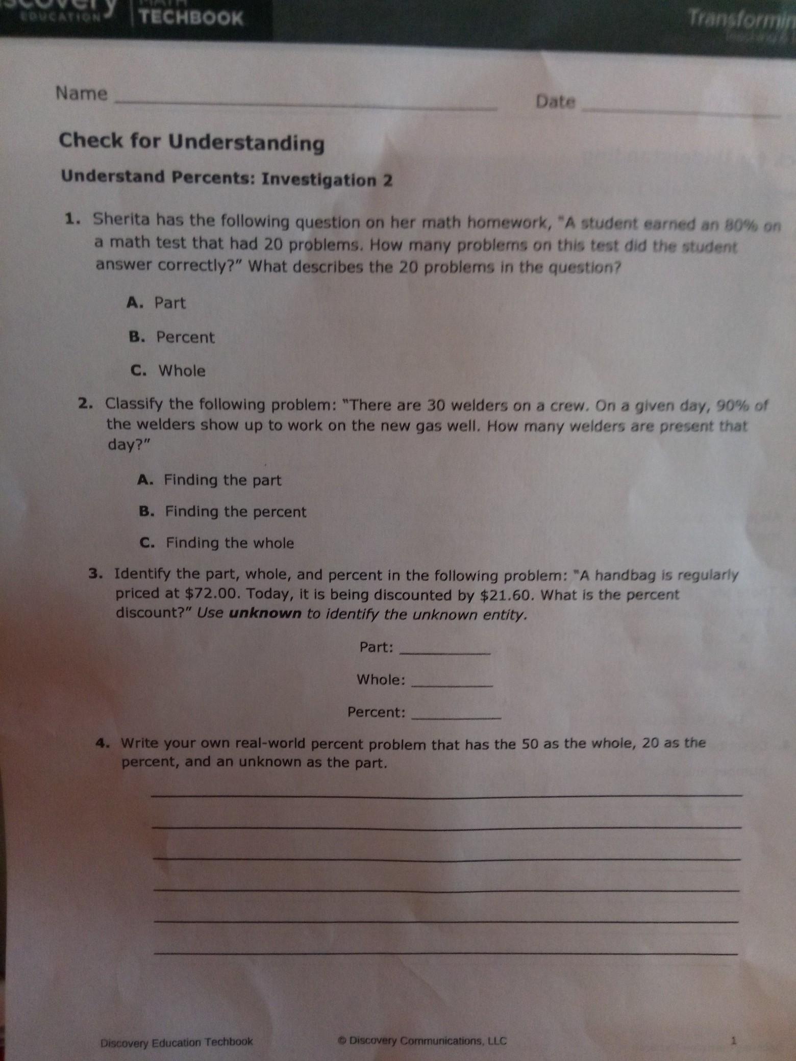 We are not looking for a %. We have both of them. We aren't looking for the whole. We know that's 30