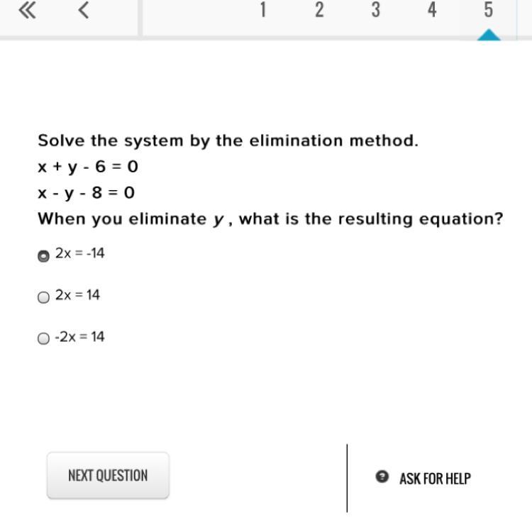 Thus, the required solution is (x, y) = (-1, 7) and the resulting equation while eliminating y is 2x = 14.