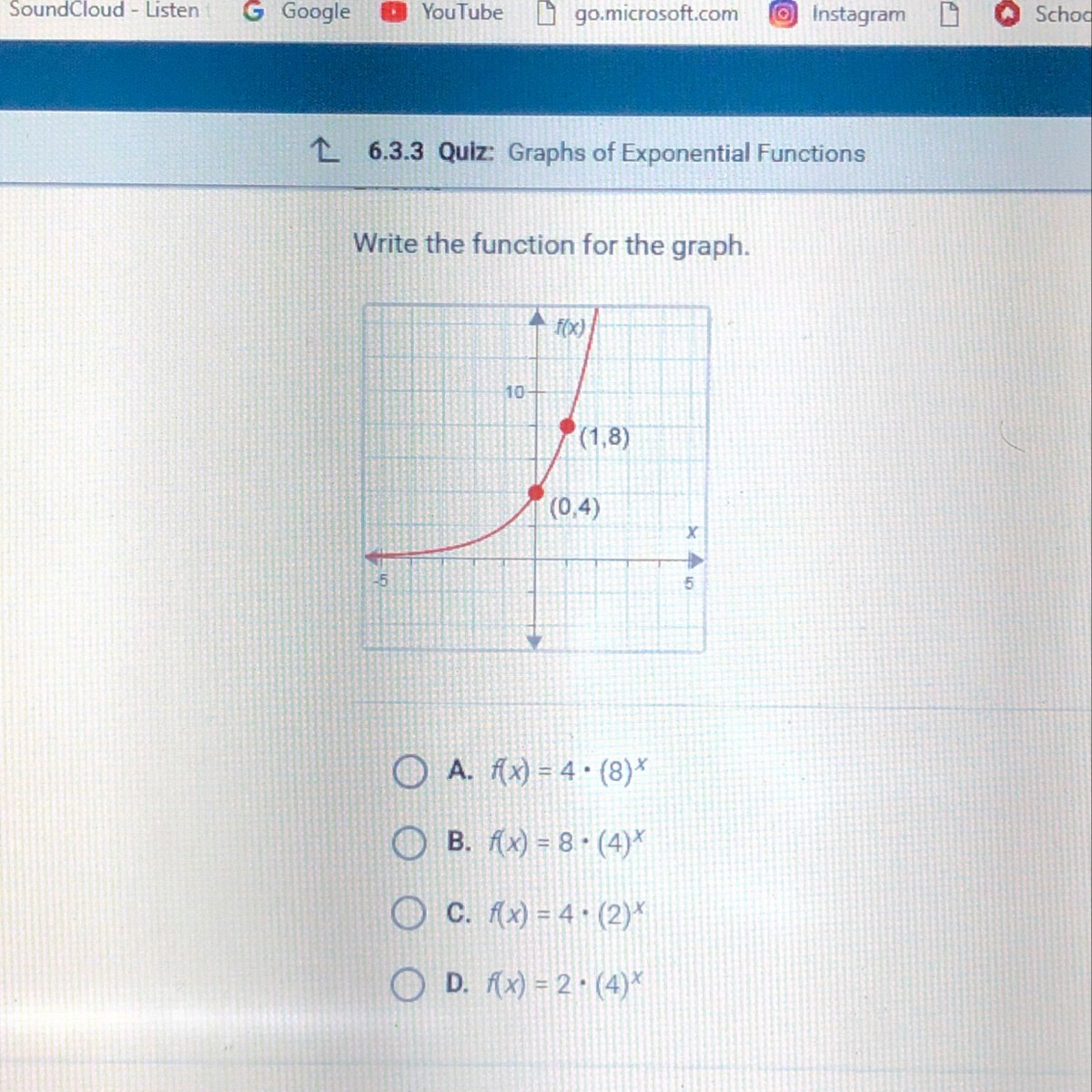 -Because B and D do not have 4 being multiplied to the number being raised to the x power, we can eliminate those.