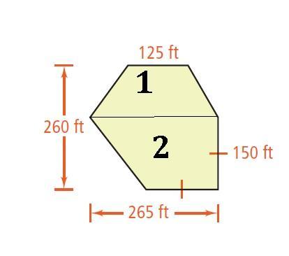 The area of the plot of land is equal to the area of trapezoid 1 plus the area of trapezoid 2
