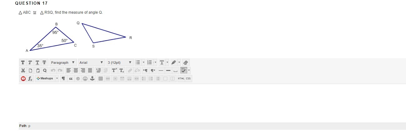 We are given two triangles: ΔABC and ΔRSQ which are congruent to each other.