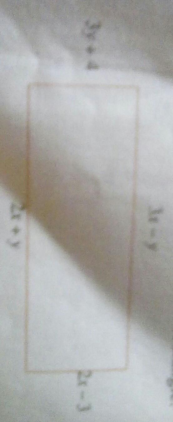 1. The first step here is to acknowledge the fact that opposite sides of a rectangle are equal in length, ie. the top and bottom sides are the same length, and the left and right sides are the same length. Thus, we can equate the expressions for the opposite lengths to get the following two equations: