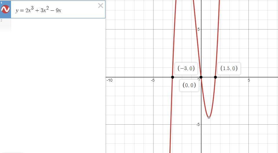 x = -3, x= 0, and x = 1.5