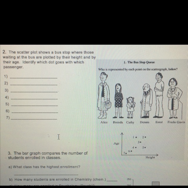 The next one is Brenda. She's taller than Cathy and Gavin. So she's the 3rd tallest person. If you look at the scatter plot, you'll see that that is number 4. So put Brenda for number 4.