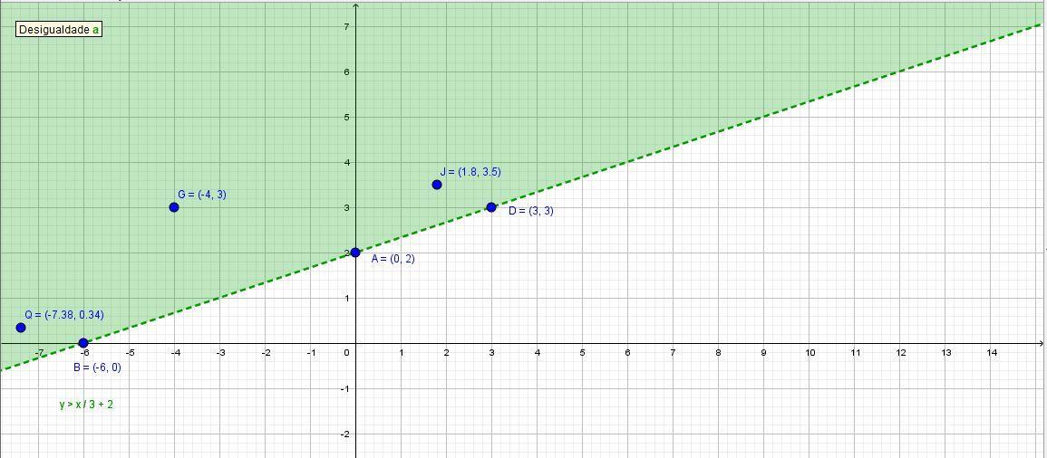 3) Since there no choices, the points that satisfy this inequality lie within the green area. We know that the points for this inequality must satisfy x < -6 or y> 2: