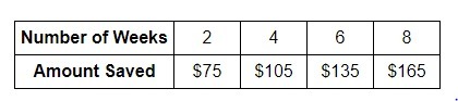 We note that in week 2 Jack had $ 75, in week 4 he had 105.