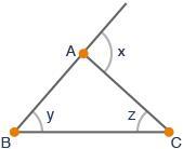 One of the properties of a triangle is that the sum of angles in a triangle will always equal (180) degrees. One can apply this here, form an equation and solve for (x). Remember, a box around an angle indicates that the measure of the angle is (90) degrees.
