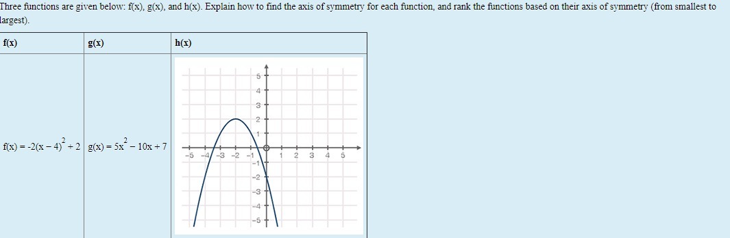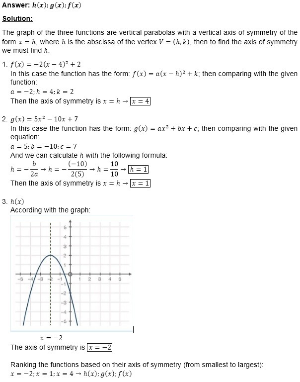 For the third function the axis of symmetry is observed with the naked eye, is the line of equation: